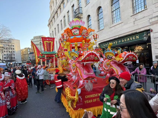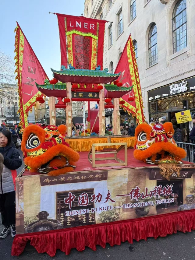 On February 2nd, local time in the UK, the annual London "Spring Festival Celebrations" took place. The floats from Chancheng District of Foshan also joined the parade, showcasing Lingnan culture and conveying Foshan's blessings to the overseas audience.