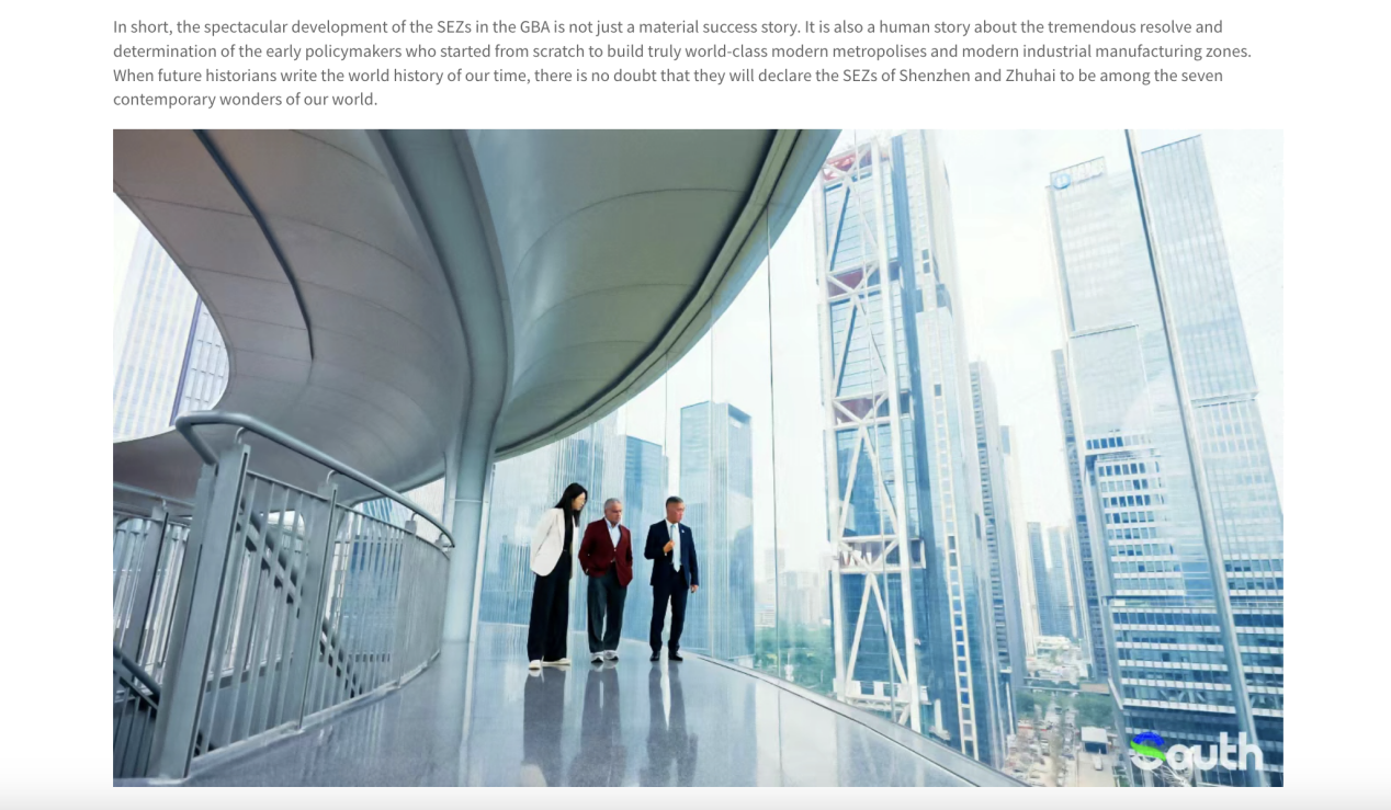 At the end of the article, Mahbubani highlighted that the spectacular development of the SEZs in the GBA is not just a material success story. It is also a human story about the tremendous resolve and determination of the early policymakers.