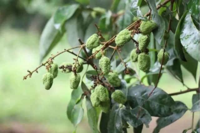 The Feizixiao lychees have already grown to the size of a thumb in a local orchard. (Photo: Dongguan Fabu)