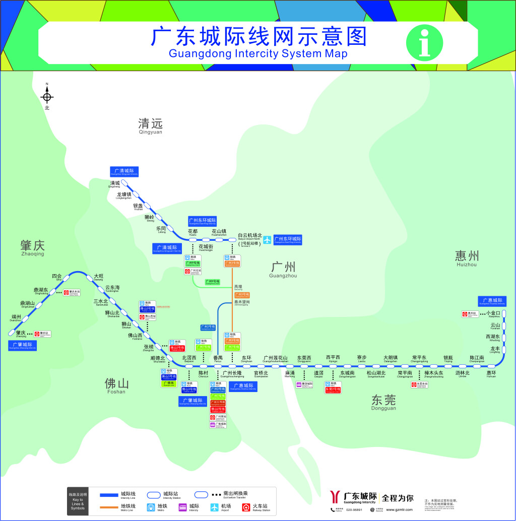 Connection of the four intercity railways offers shorter intervals, more direct trains, and more convenient travel for passengers. Starting from Panyu, Guangzhou, one can reach Foshan and Dongguan in 30 minutes, and arrive in Zhaoqing and Huizhou in 60 minutes.