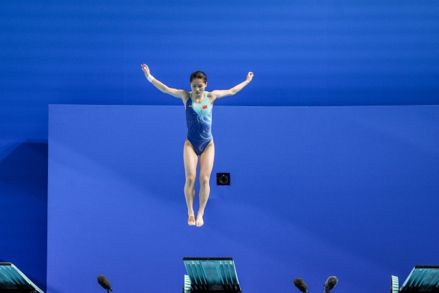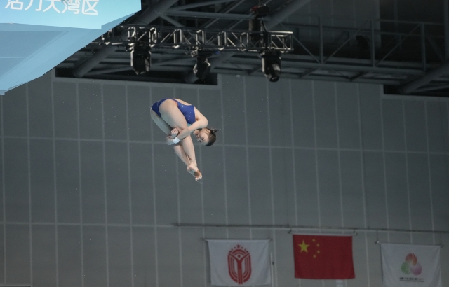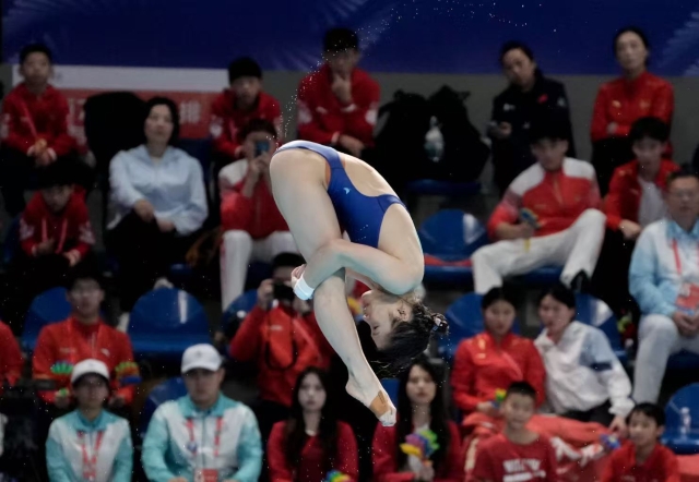 So far, Team Guangdong has claimed three gold medals in diving at the 15th National Games in the men's team, women's team, and now women's individual all-around events.