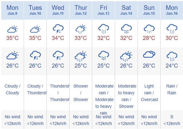 From June 9 to 10, Guangdong will experience hot weather. Qingyuan, Shaoguan, and cities and counties in western Guangdong will be mostly cloudy with (thunder) showers and locally torrential rain. Other areas will remain cloudy to sunny with scattered (thunder) showers. The highest temperatures will reach 30–33°C in northern Shaoguan and Qingyuan, as well as coastal southern Guangdong, and 34–37°C elsewhere.