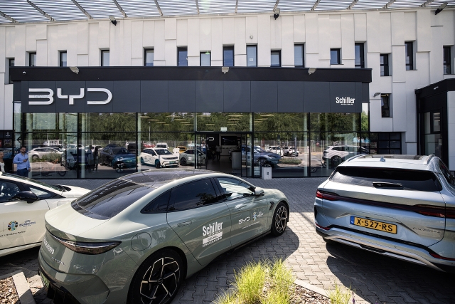 The exterior of a BYD Co. electric vehicle showroom, operated by Schiller Auto, in Budapest (Photo: CFP)