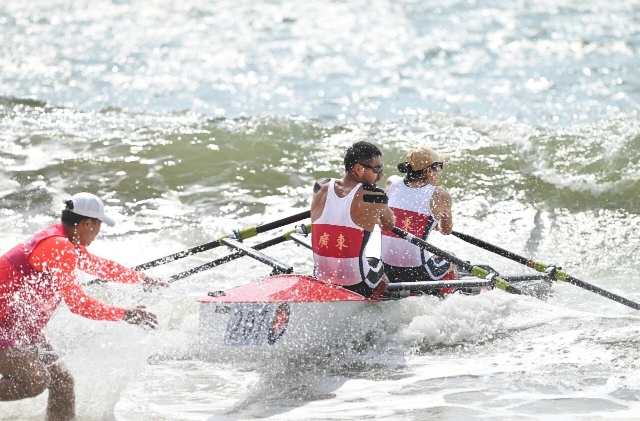 The first gold medal in coastal rowing in China's National Games history was awarded in Yangjiang, Guangdong, on November 16, as the sport made its debut as an official event at the 15th National Games.