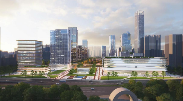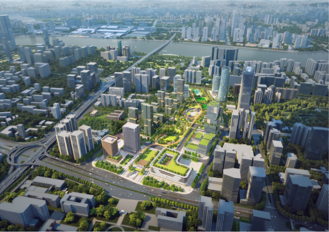 The plan positions the area as a new business powerhouse anchored by eco-garden offices and high-end corporate headquarters.