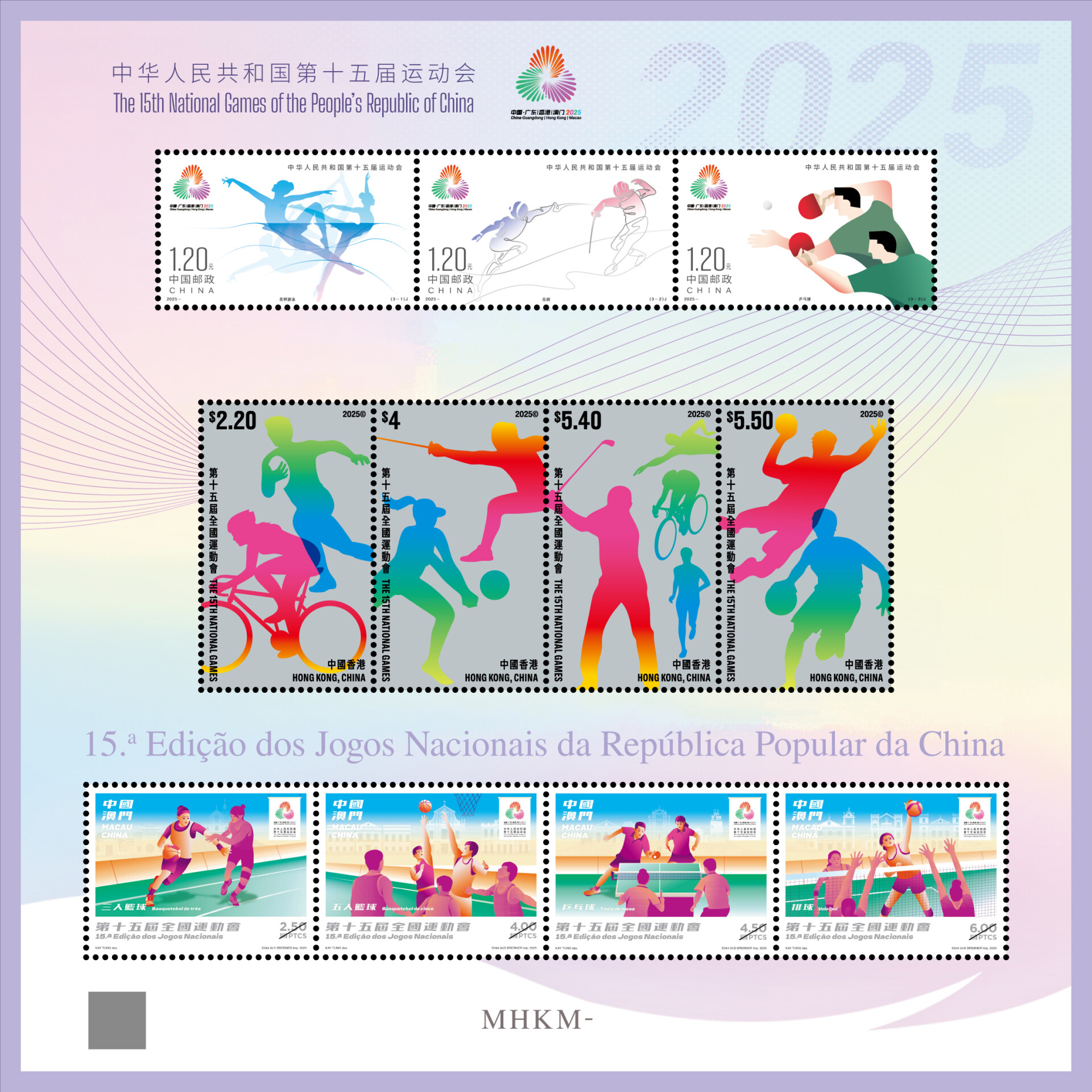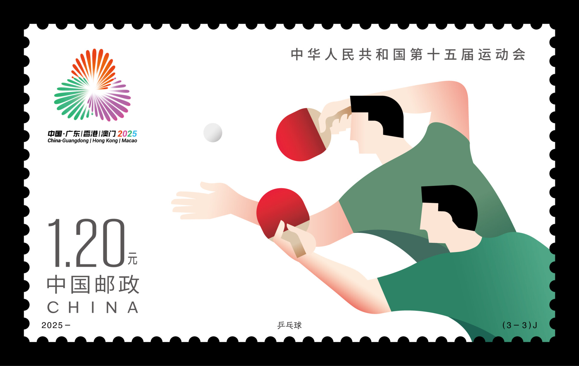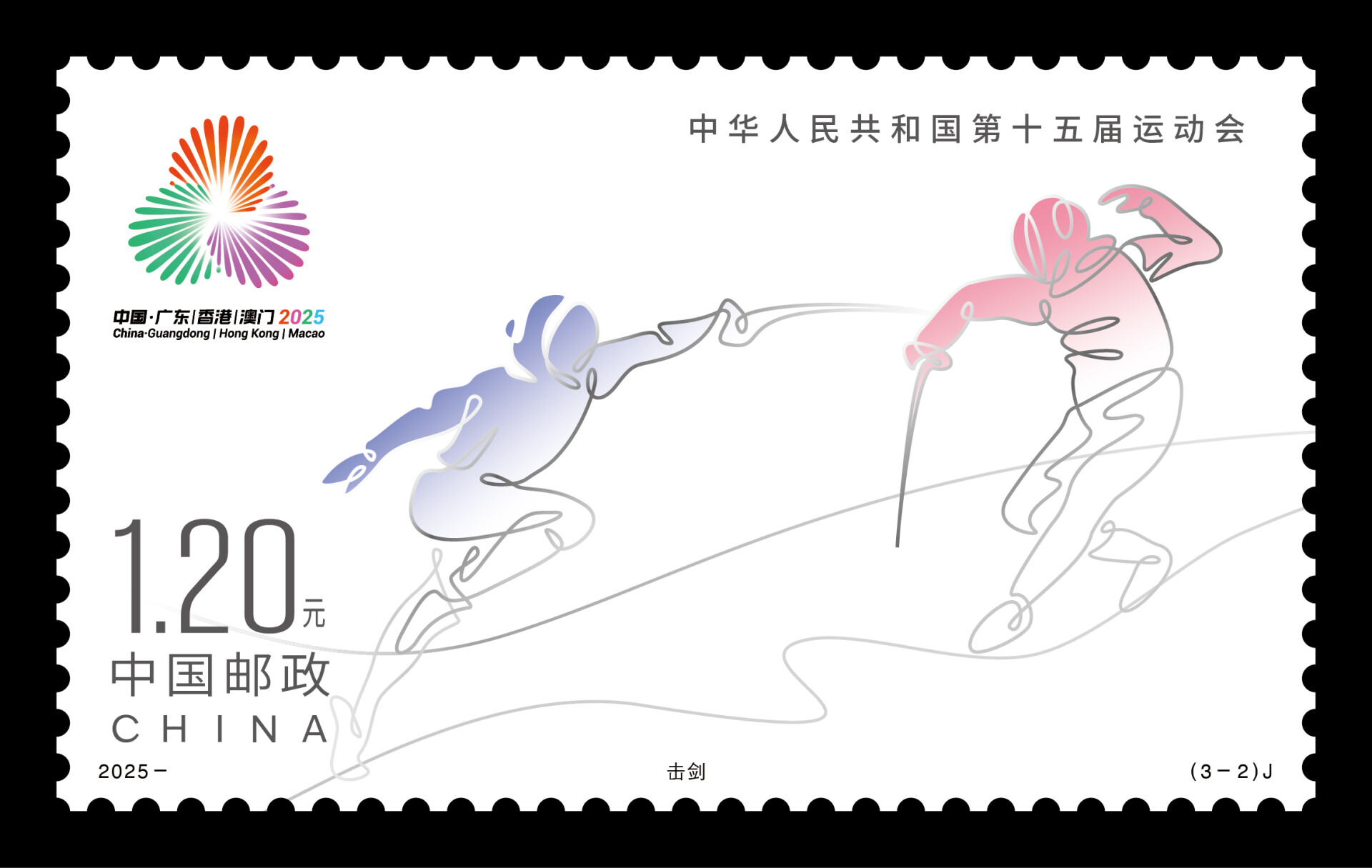 The 15th National Games of China, the first to be jointly hosted by Guangdong, Hong Kong, and Macao, launched a commemorative stamp series on November 9, blending athletic themes with regional collaboration. The three-stamp set, designed by artists from the Chinese mainland, Hong Kong, and Macao, features rhythmic gymnastics, fencing, and table tennis, each representing a fusion of sports culture and minimalist art.