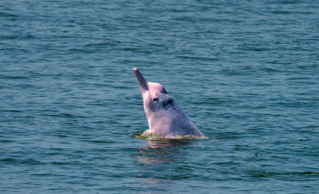 The Chinese white dolphin, a national first-class protected species, has an estimated global population of around 6,000, with more than 2,000 living in the Guangdong-Hong Kong-Macao Greater Bay Area. Known for its remarkable speed and endurance, this species can exceed 12 knots per hour and perform complex movements, including leaps, rolls, and fin displays.