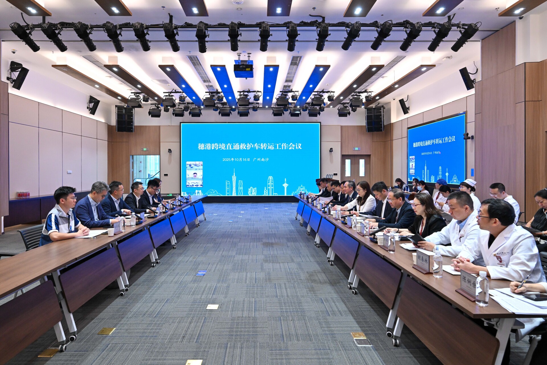 Following the drill, relevant departments from Hong Kong, Guangzhou, and Shenzhen held a cross-departmental debriefing meeting to further streamline the procedures for the direct Nansha-Hong Kong ambulance transfer service, laying a solid foundation for the smooth operation of future ambulance transfers.