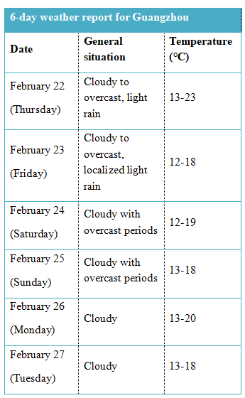 Residents in Guangzhou may not be able to feel the significant change in temperature until the evening of February 22.