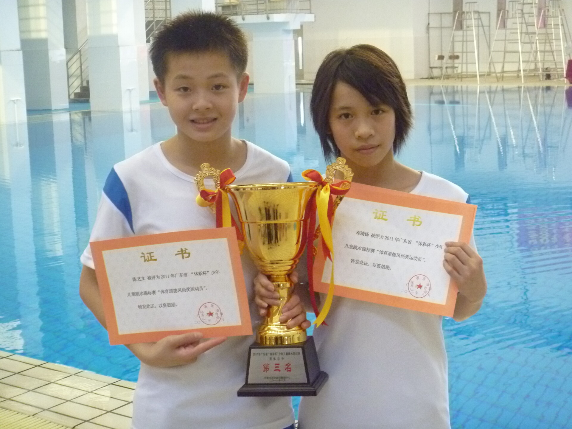 Chen Yiwen (R2) wins the first prize in a diving competition in Guangdong. (Photo provided to GDToday)