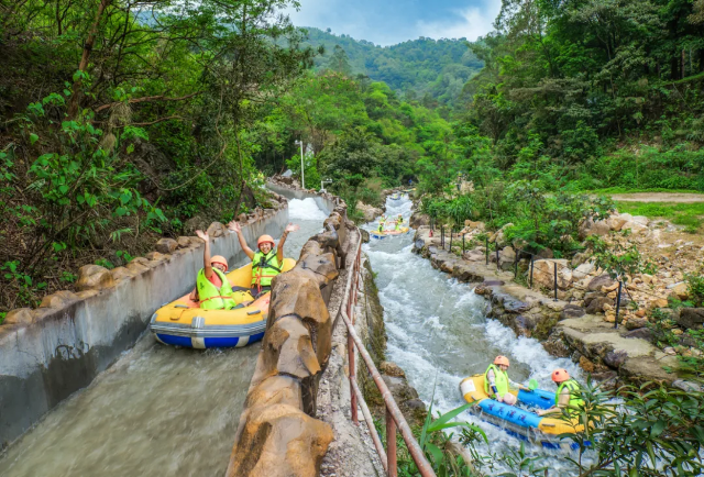 04 Xuanzhen Canyon Water Park (玄真峡谷嬉水王国), known as the "Best Rafting Destination in South China", features two distinct rafting courses: a racing course and a cliffside course.