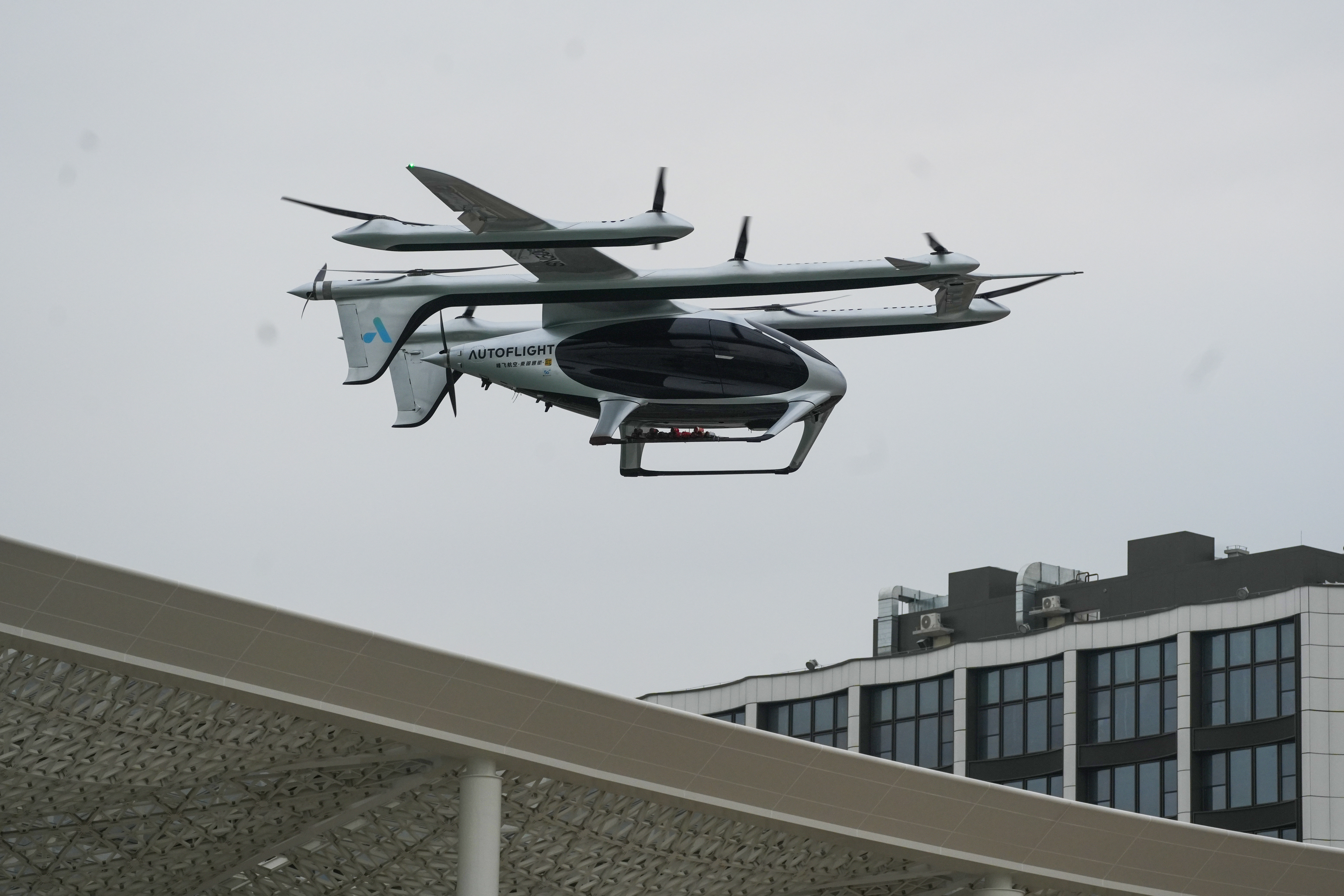 The eVTOL aircraft, also known as the "air taxi", can take off vertically like a helicopter without a traditional airport or runway. The Prosperity is a self-developed eVTOL model by Autoflight, with a composite wing configuration. It has a maximum takeoff weight of 2,000 kilograms, a maximum payload of 400 kilograms, a maximum range of 250 kilometers, and a maximum cruising speed of 200 kilometers per hour. It can carry up to 5 passengers, and its core modules have achieved 100% localization.