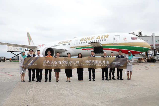 On May 30, the Boeing 787-9 Dreamliner of Gulf Air successfully landed at Guangzhou Baiyun International Airport, marking the opening of the first direct flight from Manama, the capital city of Bahrain, to Guangzhou. This also marks the second direct international route from this island country in West Asia to China.