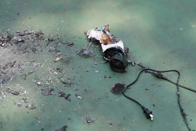 The hair dryer is smoking and gradually starts to self-ignite. [Photo/Zhejiang Fire Department]