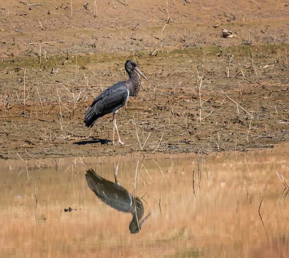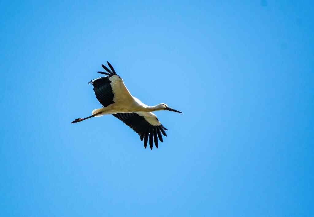 It's known that the Black Stork has black upper feathers with a metallic sheen of purple and green. They are widely distributed in China, with a population larger than that of White Storks. The Oriental White Stork has a long and sturdy beak, with vivid crimson-colored bare skin around the eyes, eyeline, and throat. The plumage on its body is predominantly pure white.