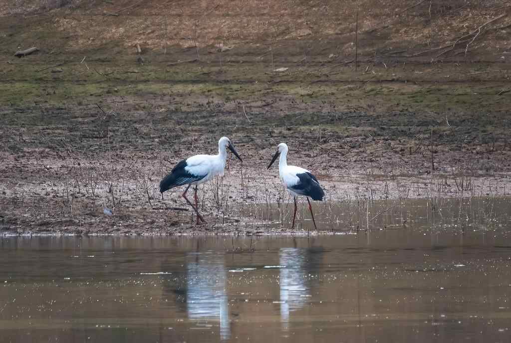 In the winter season, the reservoir of Shuikou Village in Changle Town, Lechang, Shaoguan, welcomes six "special and rare guests." On November 18, bird enthusiasts captured moments of the national first-class protected birds, known as the "giant pandas of the bird world" – the Oriental White Storks and Black Storks.