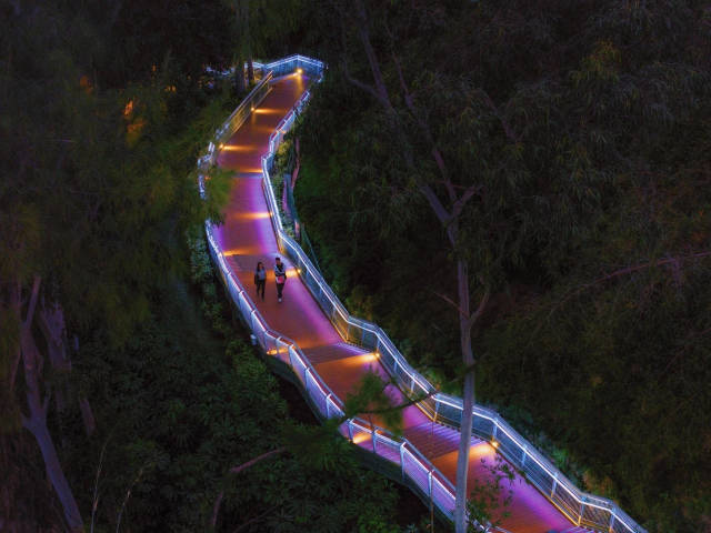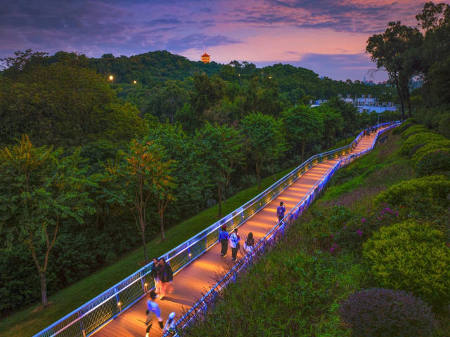 The Yundao section in Luhu Park is illuminated with elegant and warm lights and open at night. Visitors can enjoy the unique night view of Luhu Park.
