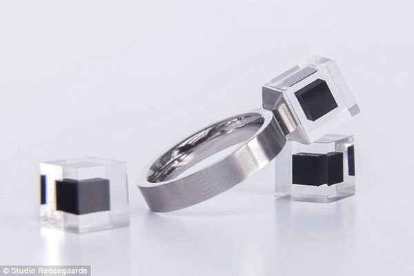 The smog which is harvested by the machine is compressed into cubes that are used to make quirky jewellery (pictured)