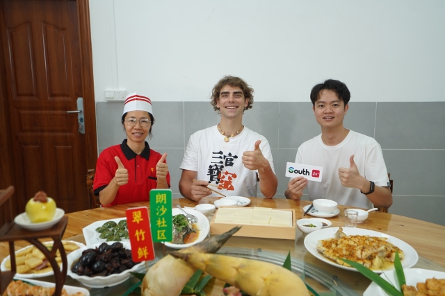 South reporter Brant and his foreign friend Denis tastes the Shakou bamboo shoots cuisine.