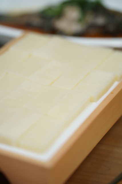To fully enjoy the fresh sweetness of Shakou bamboo shoots, the tender parts are selected, blanched, drained, and sliced thin. Laid on a bed of ice, it becomes a refreshing dish called Chilled Shakou Bamboo Shoots.