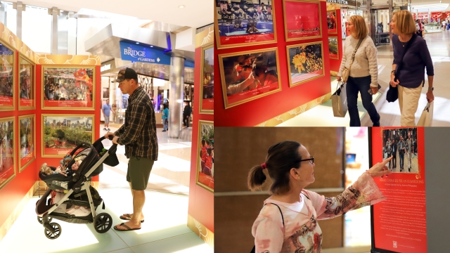 Combo photo shows people visit a photo exhibition titled "Nihao, China! See You in Guangdong" in Costa Mesa, California, the United States, on January 23, 2025. (Photo by Felix Li)