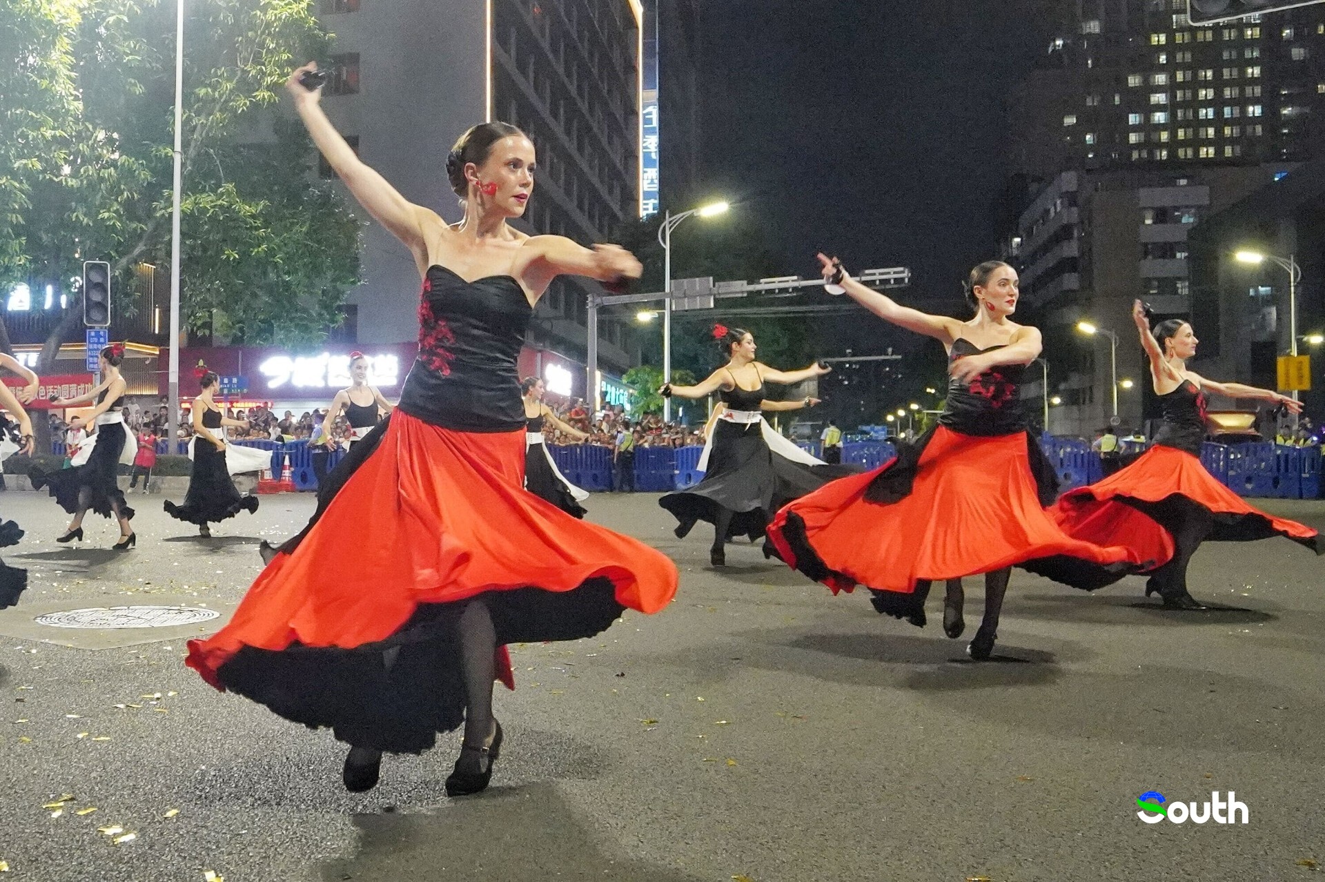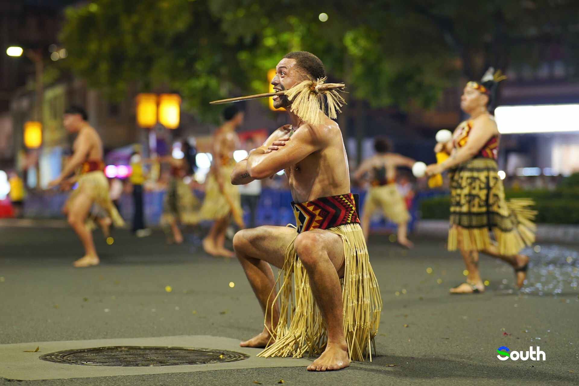 But this year's Qiuse Parade is different — a group of foreign guests has joined the celebration. The China International Folk Art Festival is being held in Foshan this year, joining hands with the Qiuse Parade for the very first time. Art troupes from 13 countries — including Serbia and Sri Lanka — took part in the parade, creating a vivid dialogue between international art and Lingnan folk traditions.