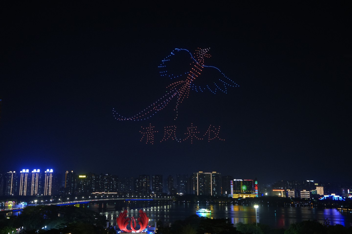 On the evening of October 11, the sky above Qingcheng District in Qingyuan, Guangdong, lit up with a drone display featuring nearly 1,000 units forming patterns such as the Chinese characters for "Qingcheng Welcomes You." The show, accompanied by cheers from spectators at Fengcheng Square, was part of the 2025 Guangdong (Qingcheng) 3rd Crossing of the Bei River event.