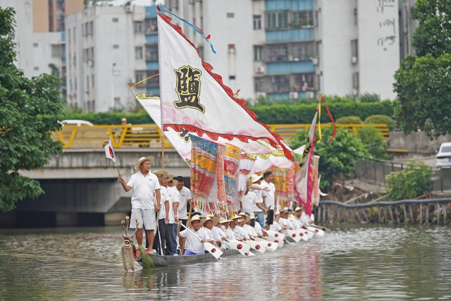 On May 27 and 28, the 593-year-old "Yanbu Old Dragon Boat" took part in the traditional "Worship Huaguang" and "Tour the Three Rivers" activities in Dali Town, Nanhai District, Foshan City.
