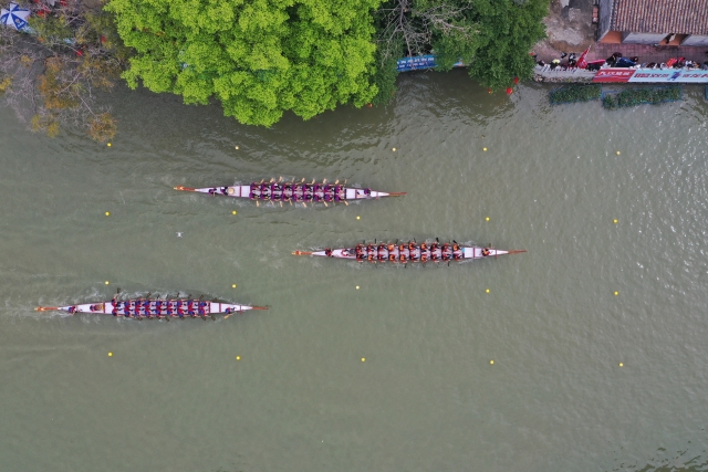 Over 20 top dragon boat teams from across the country compete at high speeds. (Photo: Dai Jiaxin)