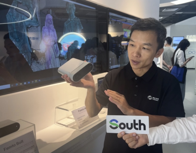 Nudging a 3D camera named Femto Bolt in the cabinet, Zhong told the South reporter that this is the series product that Orbbec collaborated on with Microsoft.