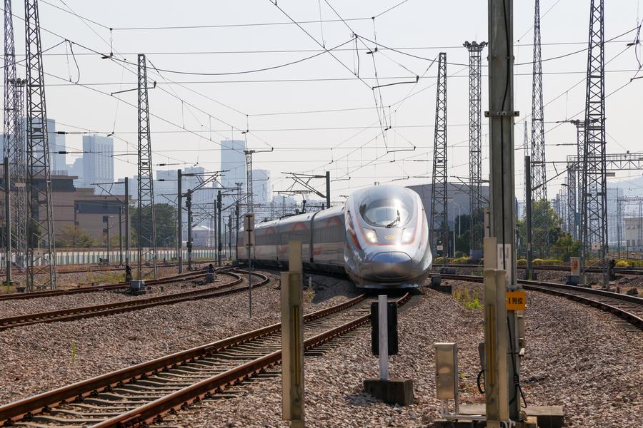 A high-speed sleeper train drives into a high-speed train depot in Shenzhen, south China's Guangdong Province, Jan. 17, 2025. (Xinhua/Mao Siqian)