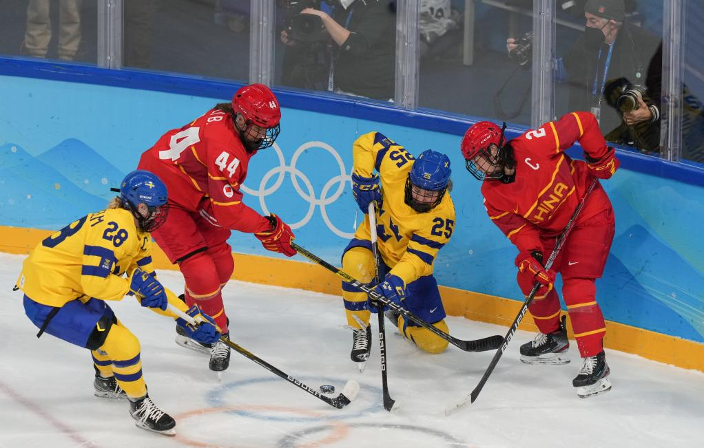 China's women's ice hockey team was in jeopardy of elimination after losing 2-1 to Sweden in Group B at the Beijing Winter Olympics on Monday.