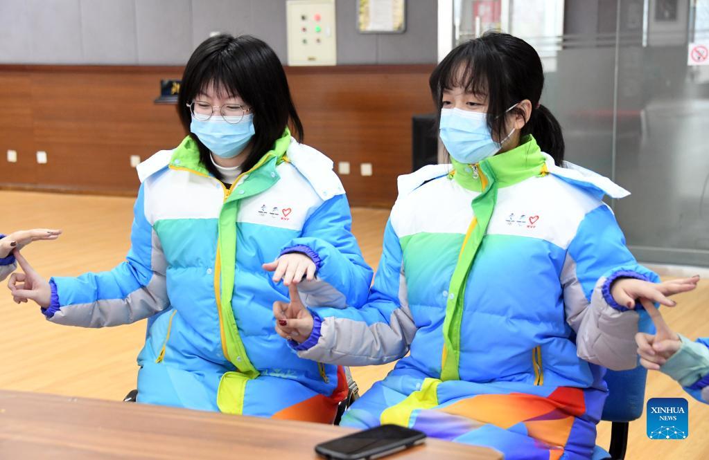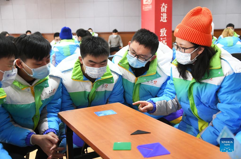 Beijing 2022 Winter Olympics and Paralympics volunteers from Beijing Jiaotong University take part in a training session to develop volunteer skills in Beijing, capital of China, Jan. 22, 2022. (Xinhua/ReBeijing 2022 Winter Olympics and Paralympics volunteers from Beijing Jiaotong University take part in a training session to develop volunteer skills in Beijing, capital of China, Jan. 22, 2022. (Xinhua/Ren Chao)