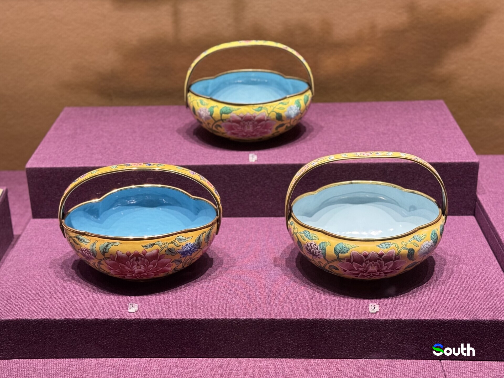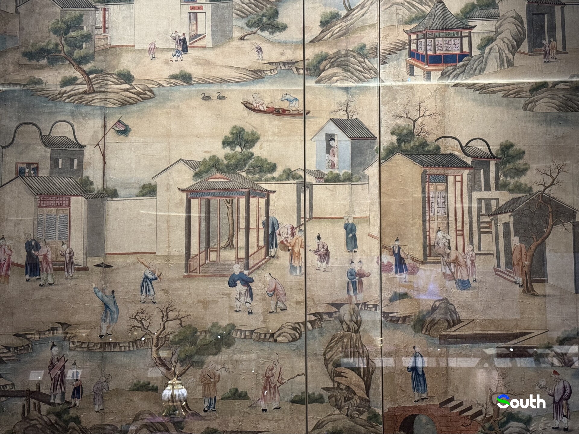 The exhibition gathers over 200 rare artifacts that chronicle Guangdong's international connections. Featured exhibits capture this spirit. A Tang Dynasty ivory figure, discovered in Guangzhou's ancient palace site, hints at early contact with Arab merchants, while the city's Tang-era foreign quarter, Fan Fang, shows that Guangzhou was already a global hub over a thousand years ago. A Ming gold ingot reveals trade with the Indian Ocean; an 18th-century enamel flower basket highlights East-West artistic exchange; and a Qing Dynasty hand-painted wallpaper, once decorating a British mansion, reconnects East and West nearly 300 years later.