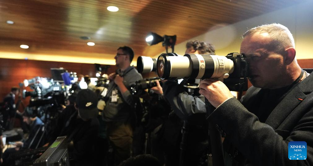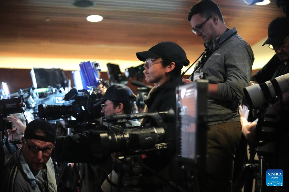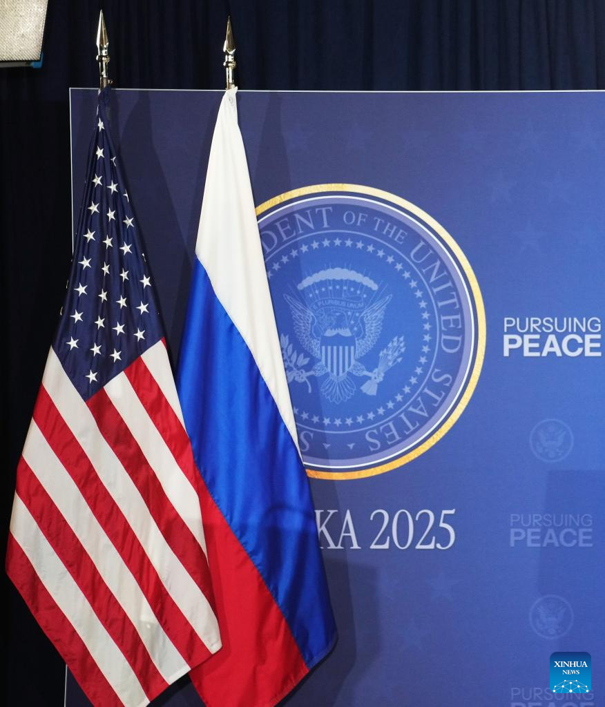Photo taken on Aug. 15, 2025 shows a press room ahead of a meeting between Russian President Vladimir Putin and U.S. President Donald Trump at Joint Base Elmendorf-Richardson in Anchorage, Alaska, the United States. (Xinhua/Wu Xiaoling)