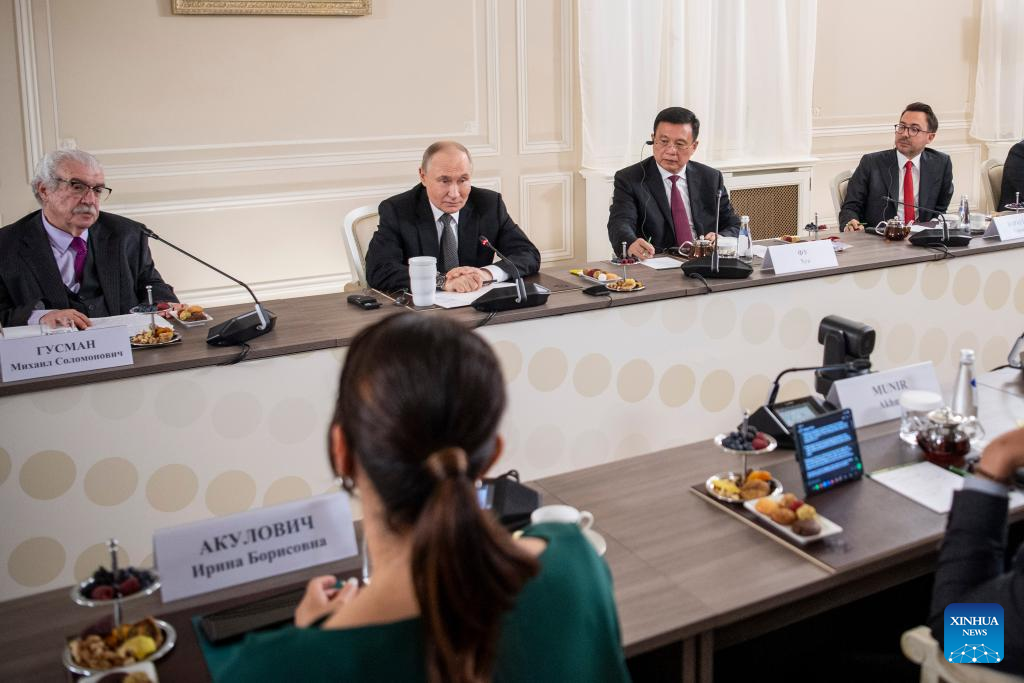 Russian President Vladimir Putin meets with heads of major international news agencies in St. Petersburg, Russia, June 18, 2025. (Xinhua/Cao Yang)