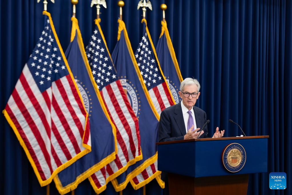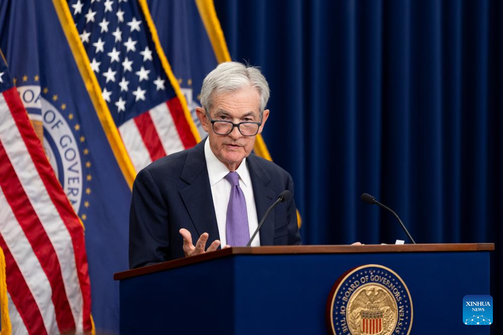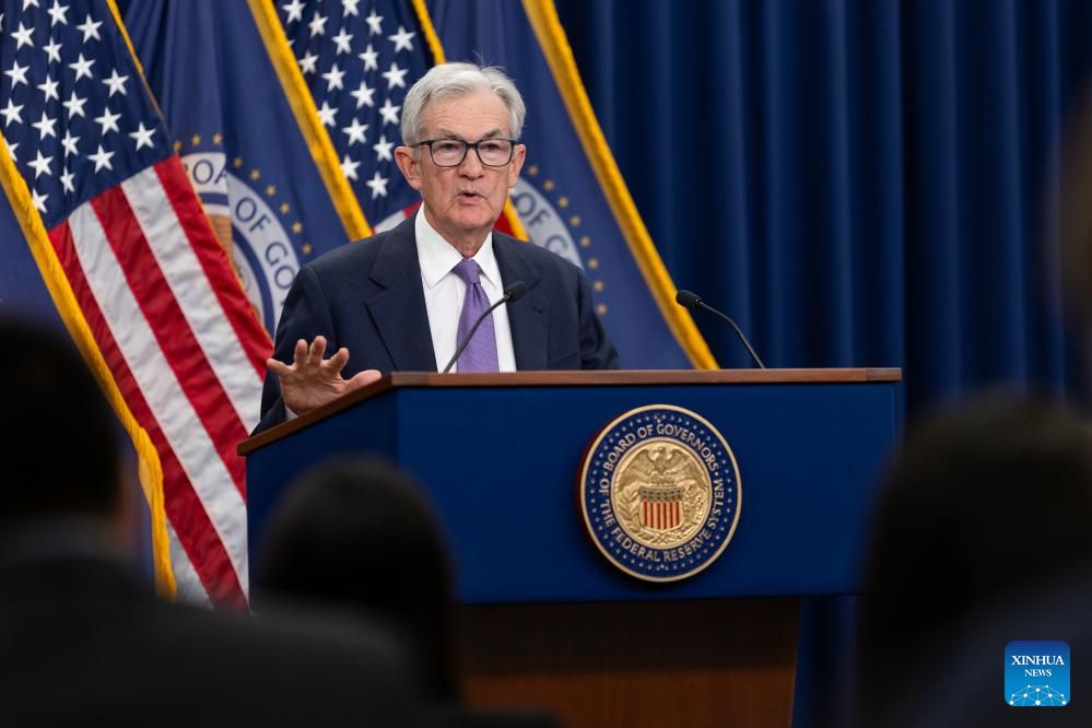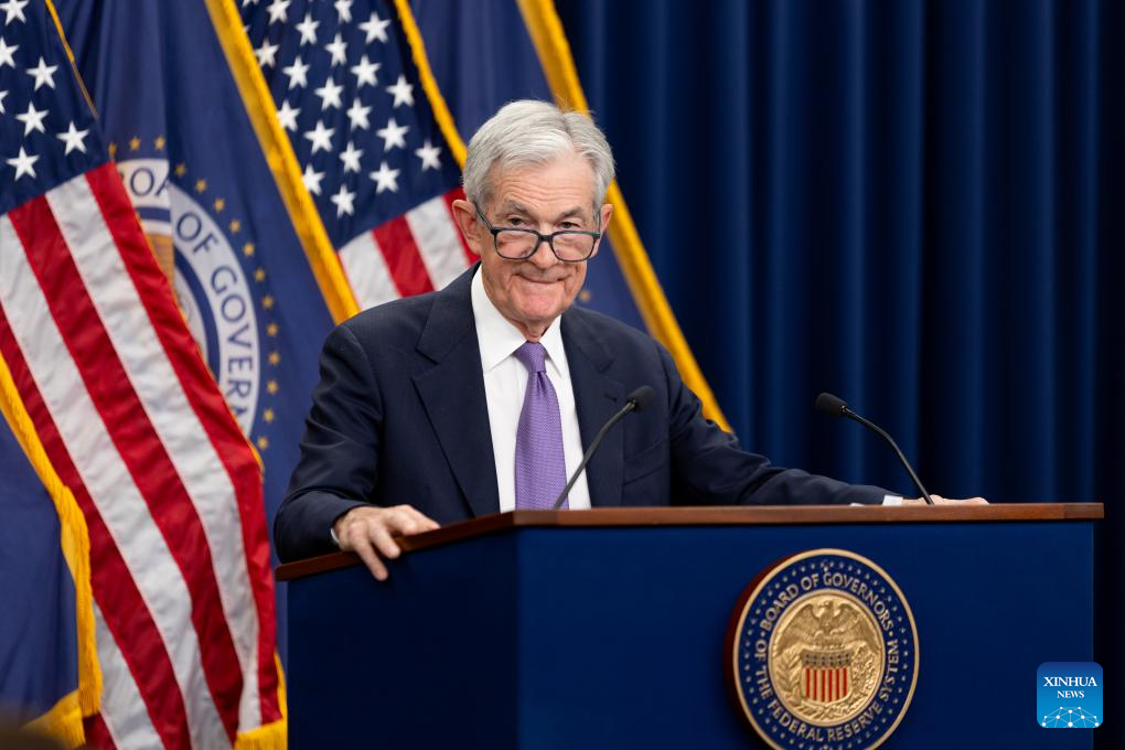 U.S. Federal Reserve Chair Jerome Powell attends a press conference in Washington, D.C., the United States, Oct. 29, 2025. The U.S. Federal Reserve on Wednesday decided to lower the target range for the federal funds interest rate by 25 basis points to 3.75 to 4 percent, marking its second rate cut this year. (Xinhua/Hu Yousong)