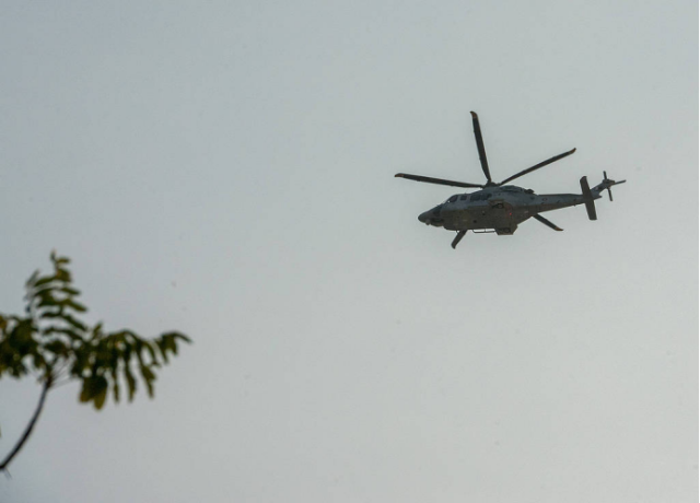 A helicopter is seen flying over the site of the Israeli airstrike in Doha, Qatar on September 09, 2025. (Photo: CFP)