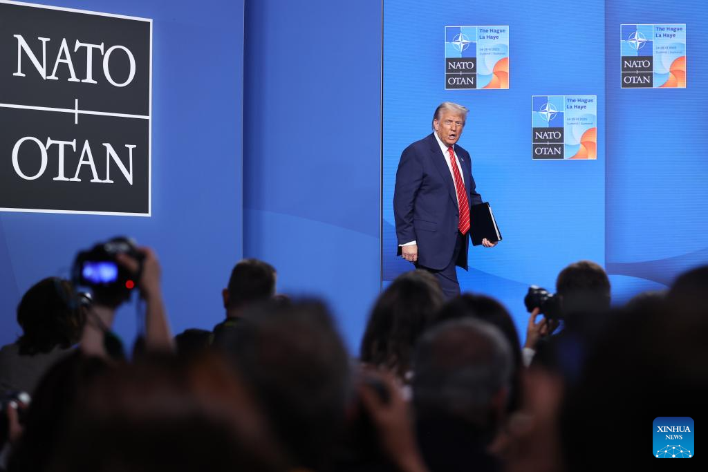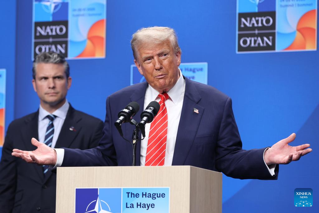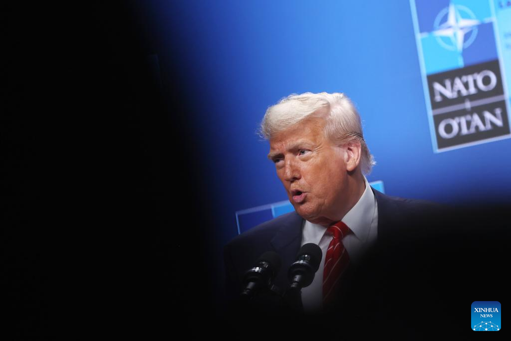 U.S. President Donald Trump attends a press conference following the NATO summit in The Hague, the Netherlands, on June 25, 2025. Trump said here on Wednesday that the United States will hold talks with Iran next week. (Xinhua/Zhao Dingzhe)