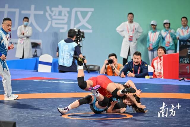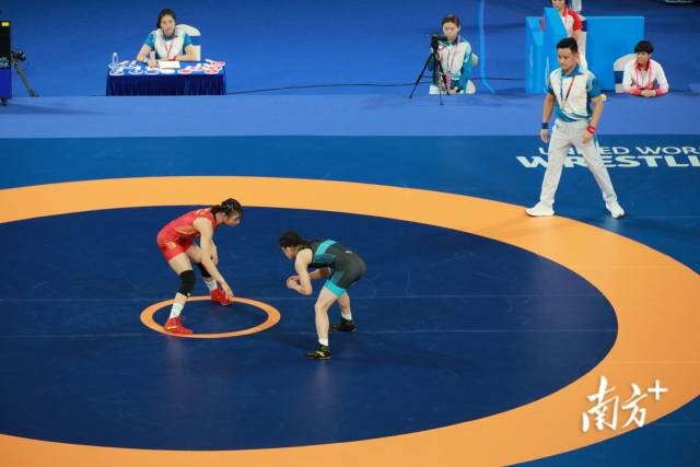 In the women's freestyle 50kg category, athletes from Xizang and Guangdong face off in the first match.