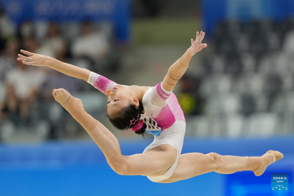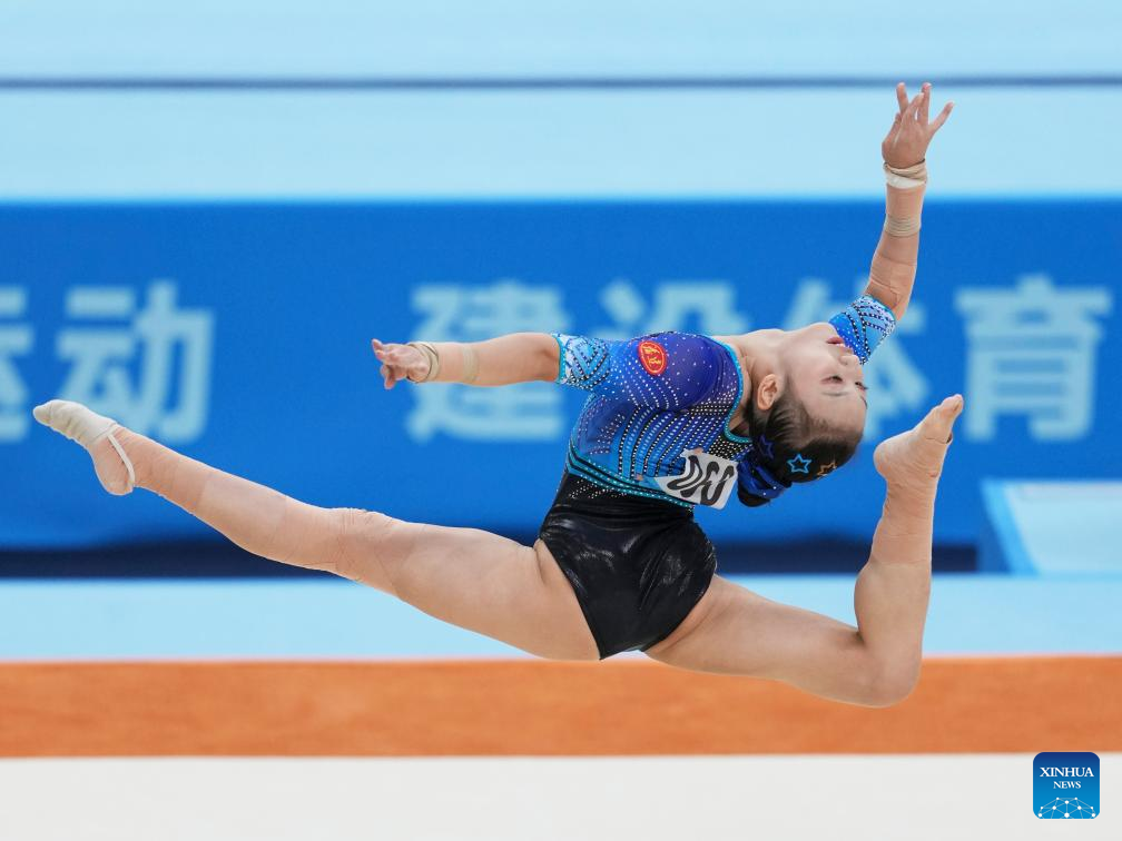 Zhang Yuying of Beijing competes in floor exercise during the artistic gymnastics women's individual all-around final at China's 15th National Games in Zhaoqing, south China's Guangdong Province, Nov. 15, 2025. (Xinhua/Xu Bingjie)