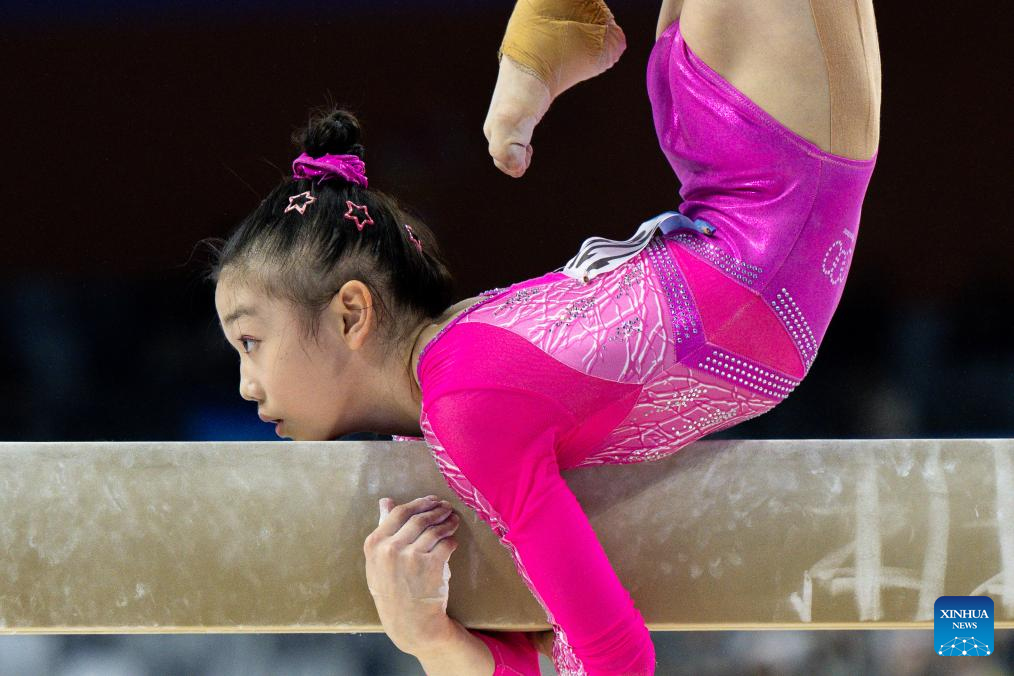Qiu Qiyuan of Fujian competes in balance beam during the artistic gymnastics women's individual all-around final at China's 15th National Games in Zhaoqing, south China's Guangdong Province, Nov. 15, 2025. (Xinhua/Du Zixuan)