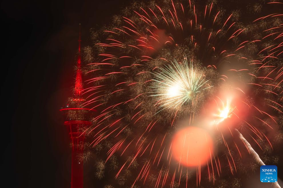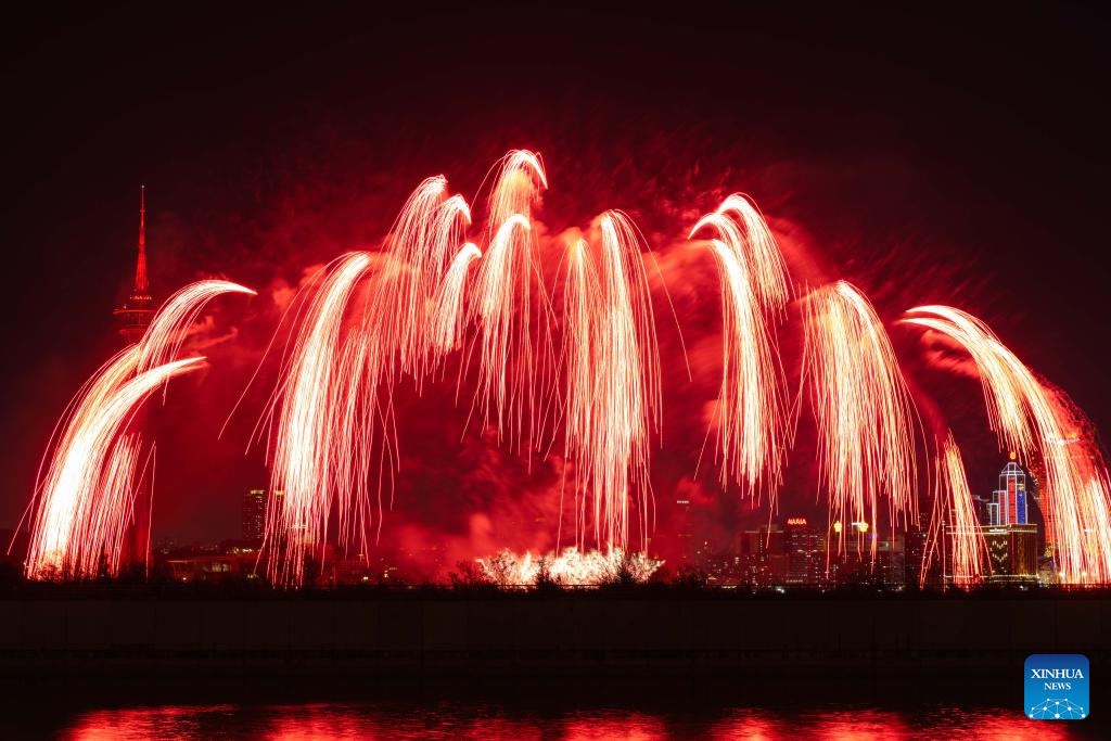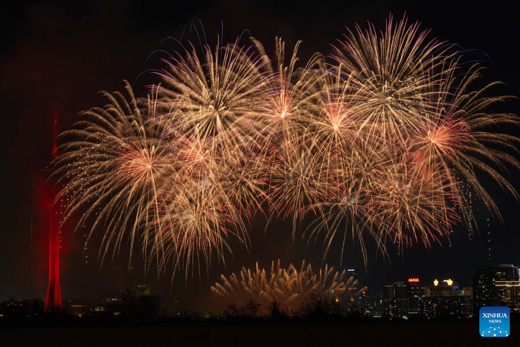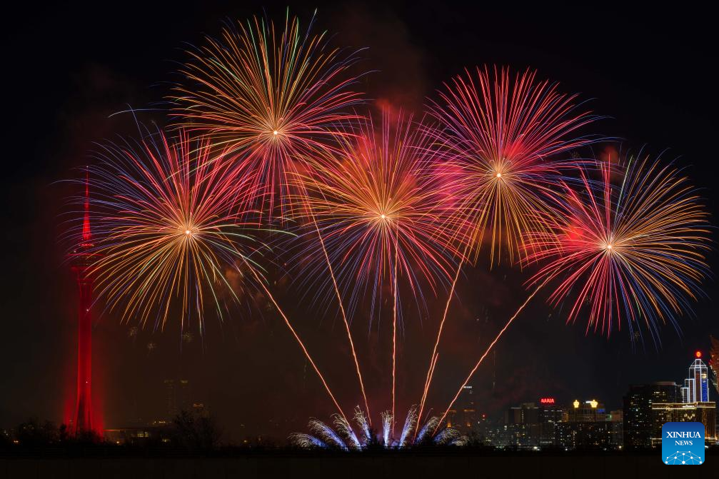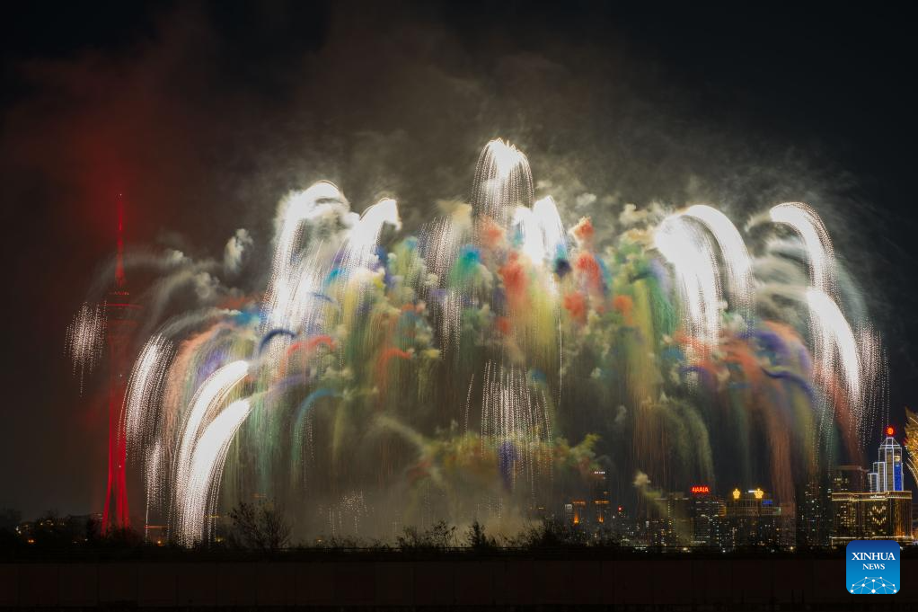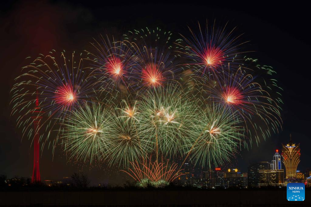 Fireworks illuminate the sky during an international fireworks display contest in Macao, south China, Oct. 1, 2025. (Photo by Cheong Kam Ka/Xinhua)