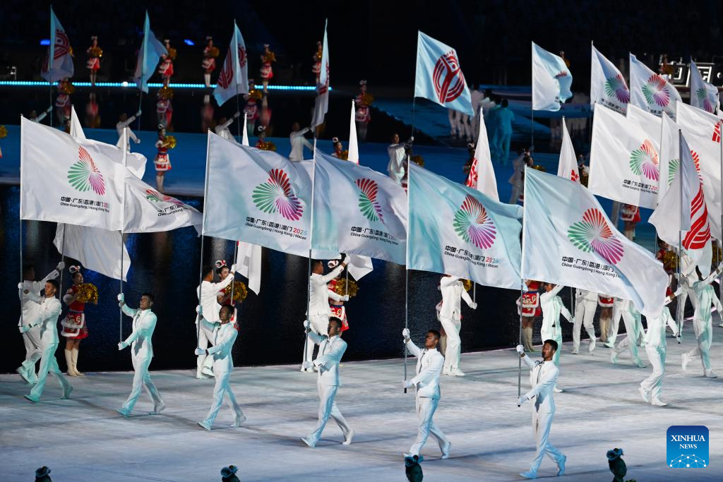 Flags are carried during the opening ceremony of China's 15th National Games in Guangzhou, south China's Guangdong Province, Nov. 9, 2025. (Xinhua/Yang Guanyu)