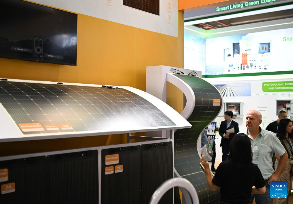 The 136th China Import and Export Fair, popularly known as the Canton Fair, kicked off in Guangzhou on Tuesday, showcasing a variety of low-carbon exhibits. (Xinhua/Lu Hanxin)