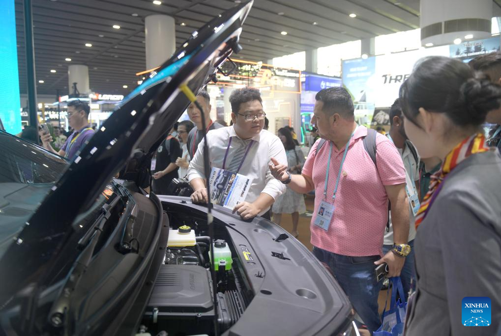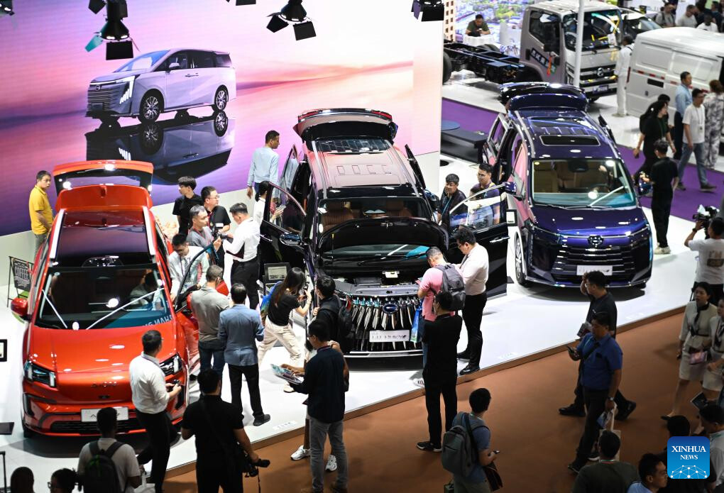 Visitors look at new energy vehicles during the Canton Fair in Guangzhou, south China's Guangdong Province, Oct. 15, 2024.