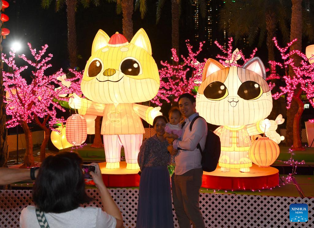 People visit a lantern fair marking the upcoming Mid-Autumn Festival and National Day at Victoria Park in Hong Kong, south China, Sept. 12, 2024. (Xinhua/Chen Duo)
