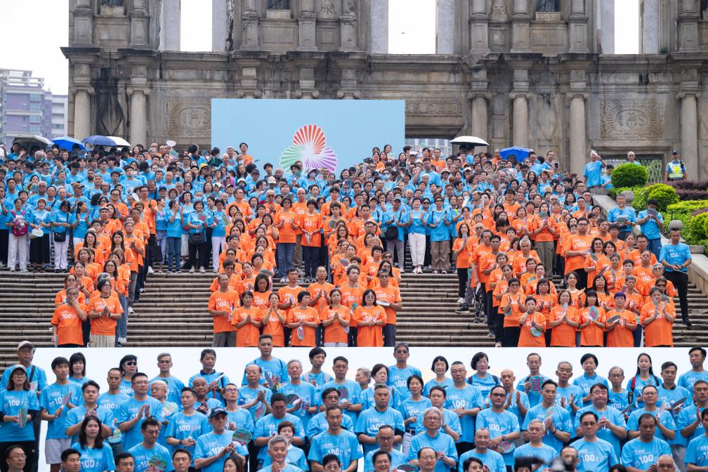 Citizens participate in a walk to mark the 100-day countdown to China's 15th National Games in Macao, south China, Aug. 1, 2025. (Xinhua/Cheong Kam Ka)