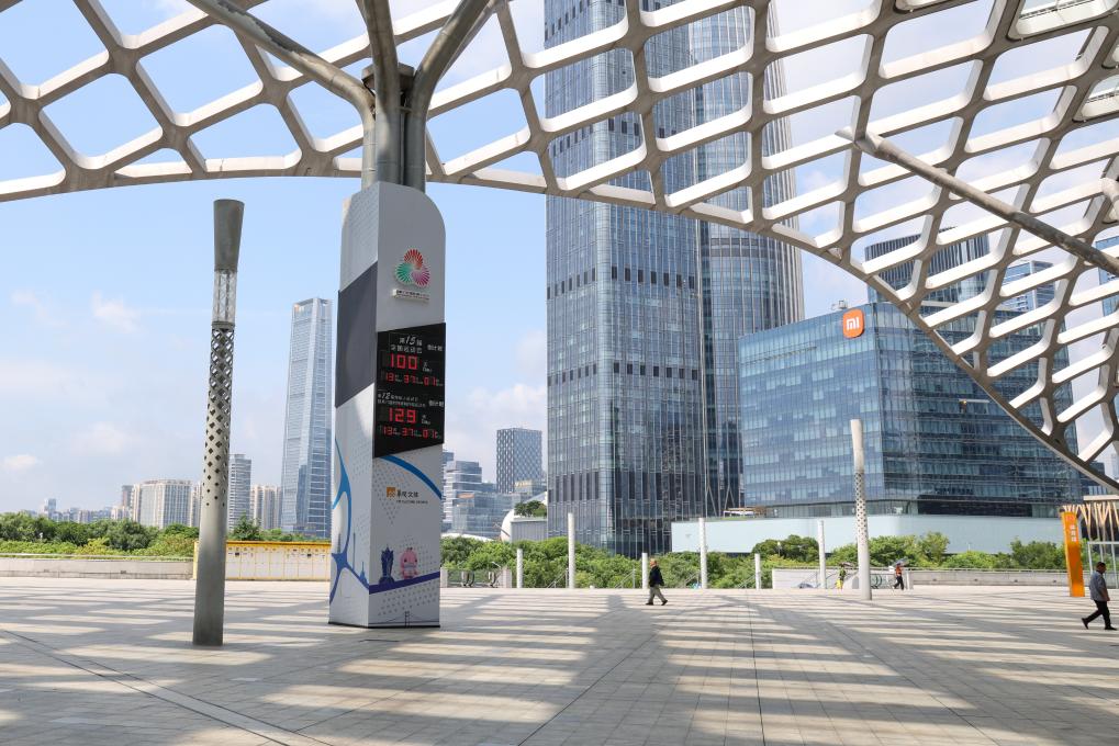 Photo taken on Aug. 1, 2025 shows a 100-day countdown display in Shenzhen, south China's Guangdong Province. (Xinhua/Liang Xu)