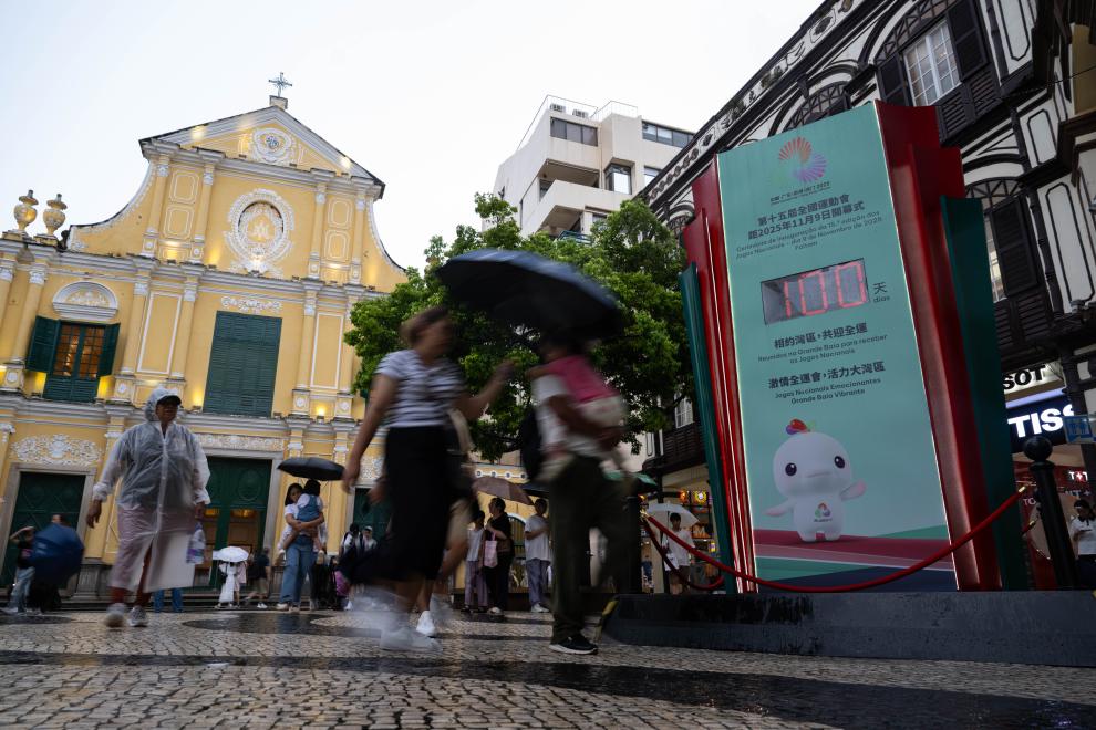 Photo taken on Aug. 1, 2025 shows a 100-day countdown display in Macao, south China. (Xinhua/Cheong Kam Ka)